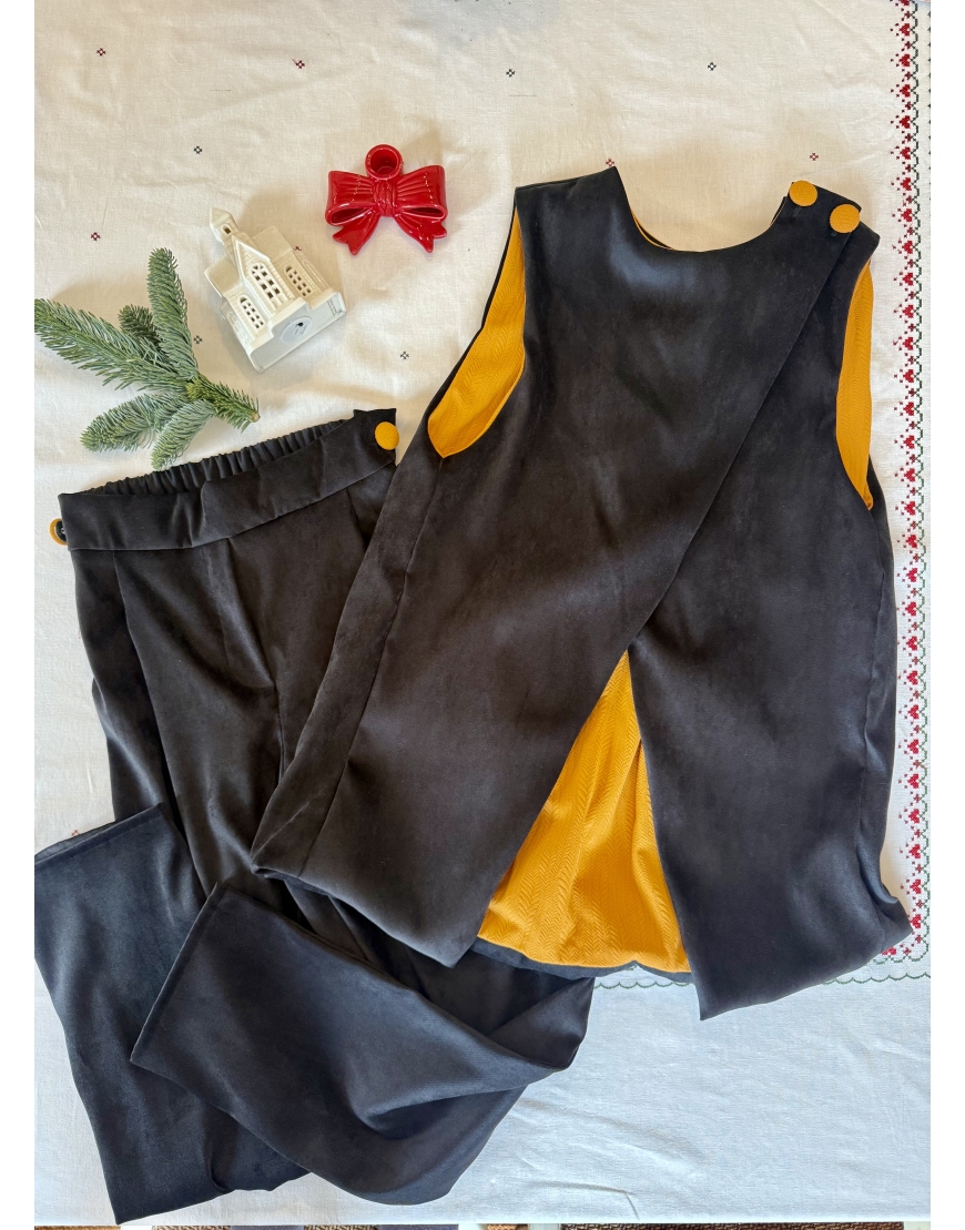 Pants and vest in velvet, lined with lycra (REVERSIBLE)
