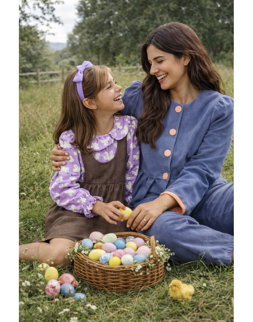 Calças e blusa em veludo azul acinzentado, com botões forrados em licra.